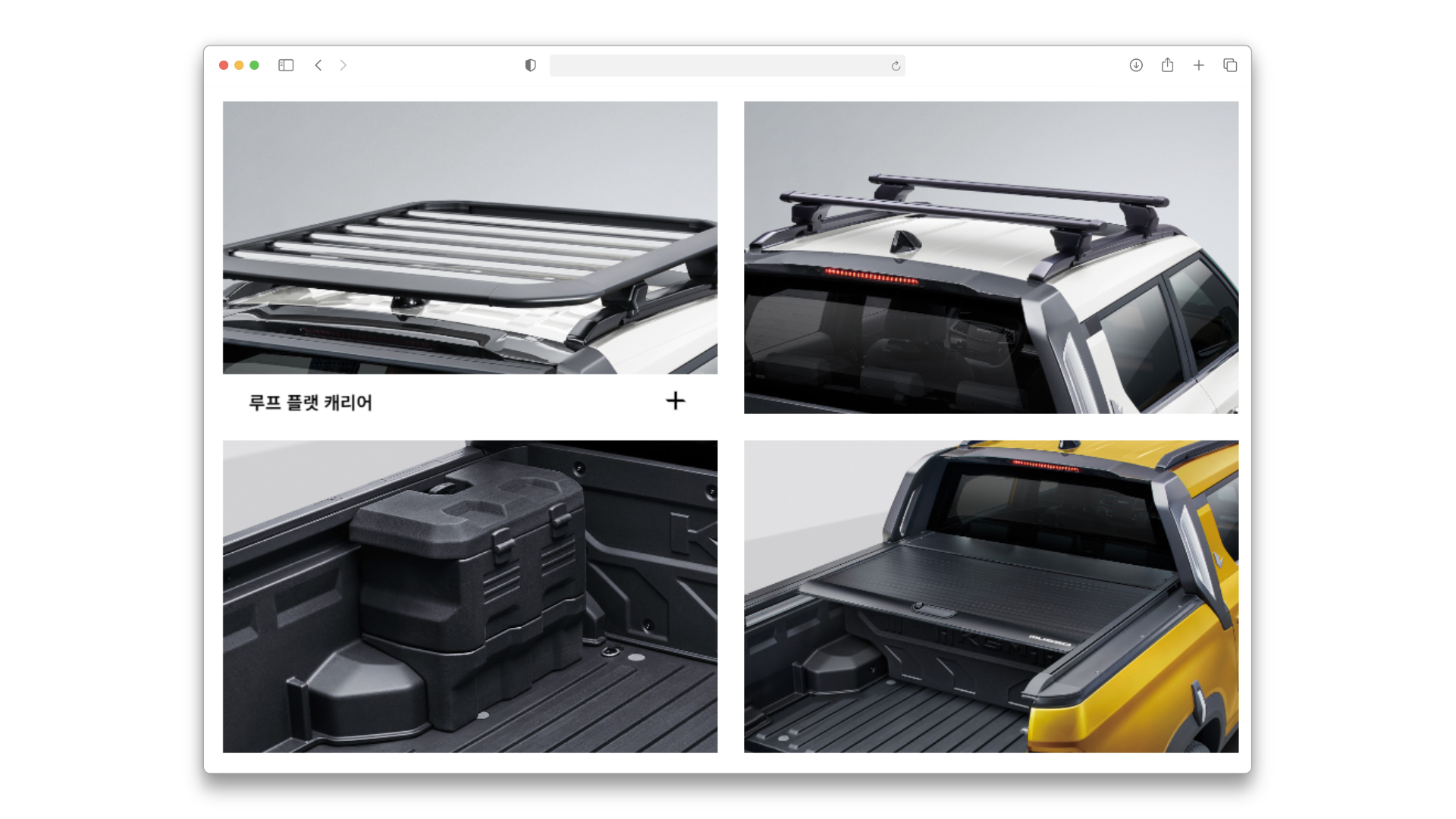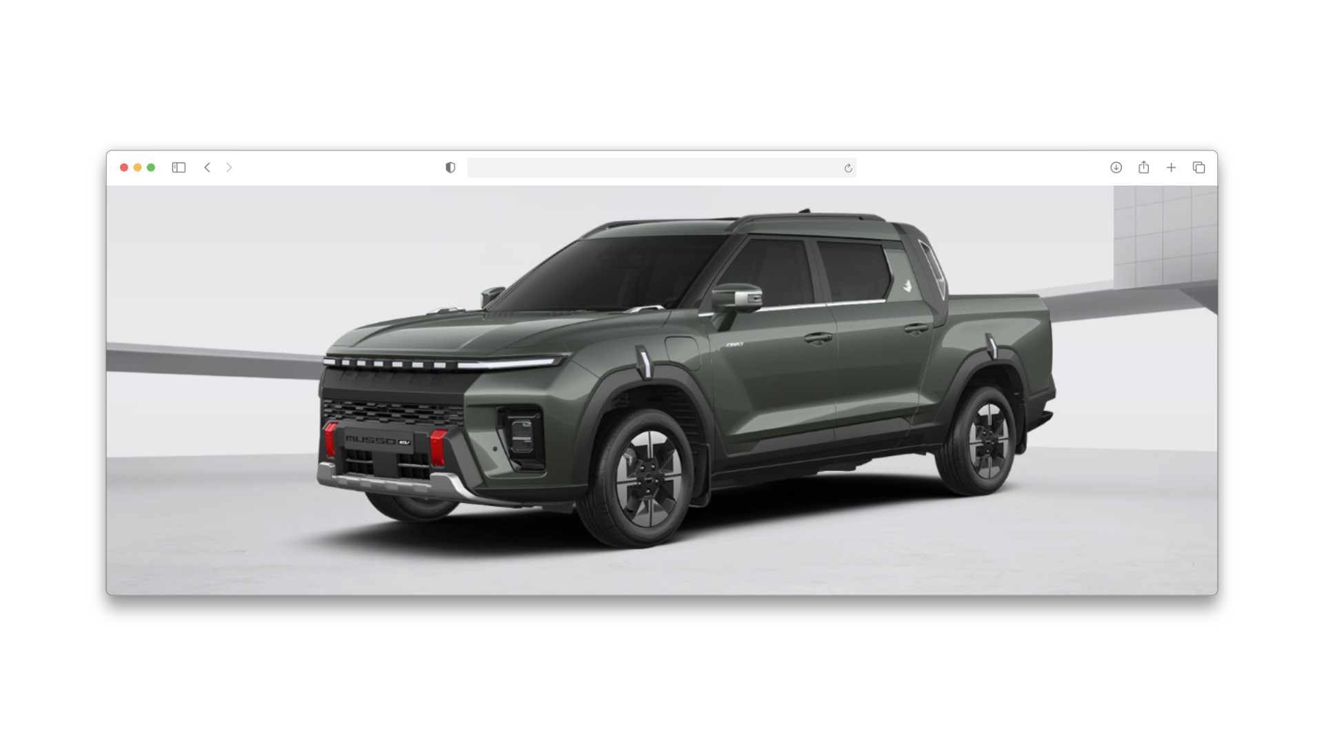 외모는 한마디로 '터프한 모던함'이에요. 토레스의 DNA가 살짝 엿보이지만, 픽업트럭 특유의 강인함이 더해졌어요. 전면부의 점선 형태 일자형 주간주행등(DRL)은 앞으로 KG모빌리티 전기차의 상징이 될 전망이에요.