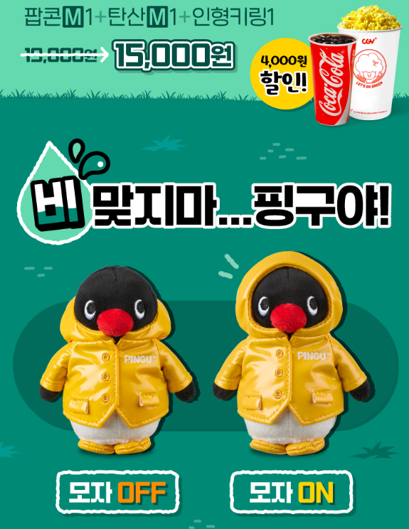 CGV 핑구 키링 2025는 우비를 입은 귀여운 핑구를 담아낸 한정판 굿즈예요. 단품은 11,000원, 세트는 15,000원으로 가격도 합리적이고, 팝콘과 음료까지 함께 즐길 수 있어 더욱 실속 있어요.무엇보다 전국 CGV 매장에서만 만날 수 있는 만큼, 빠른 품절이 예상되니 관심 있다면 서두르는 게 좋아요. 팬이라면 절대 놓쳐서는 안 될 귀여운 아이템이에요.